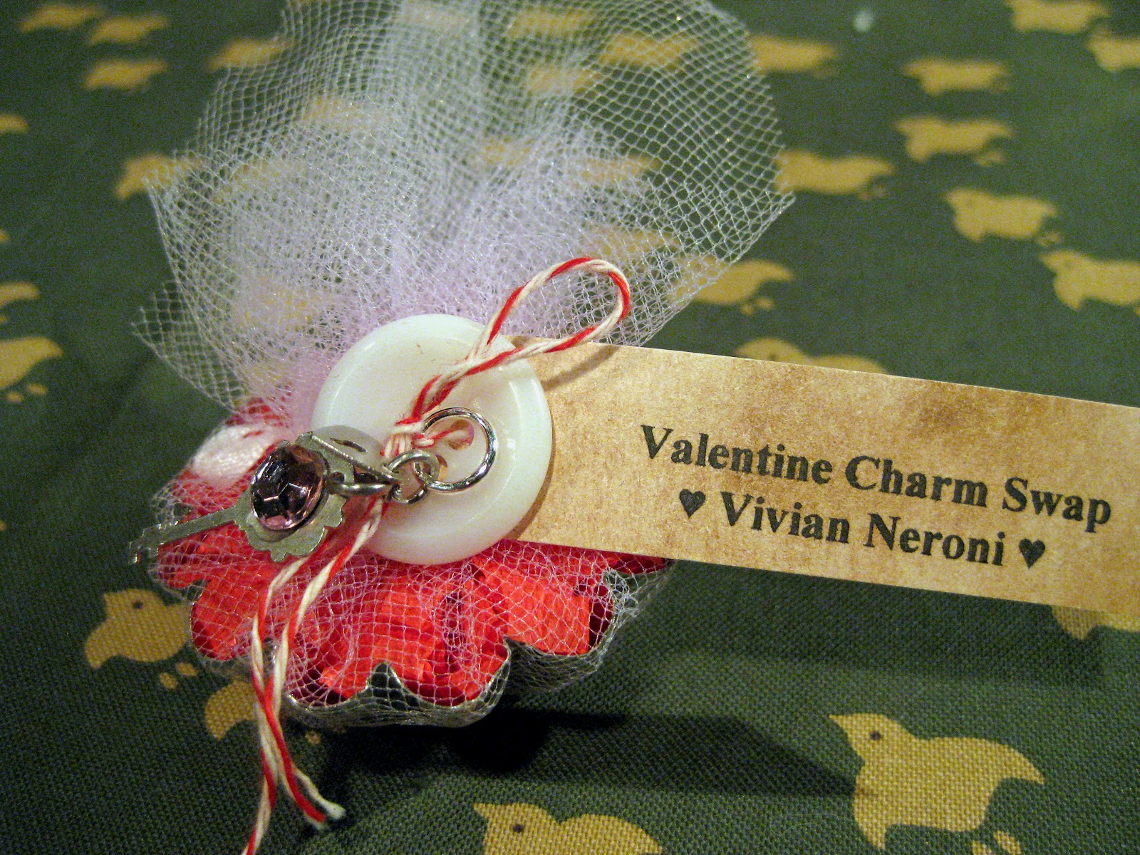 The group that got together for the Christmas swap had so much FUN we decided to do a Valentine's charm swap. I've always wanted to do a charm swap. I had big plans for my charms I was trying to make polymer clay cake slices with roses on top. Well, they ended up being hearts with weird flowers on top. Making slices of cake proved to be much harder than it looked on the u tube videos.